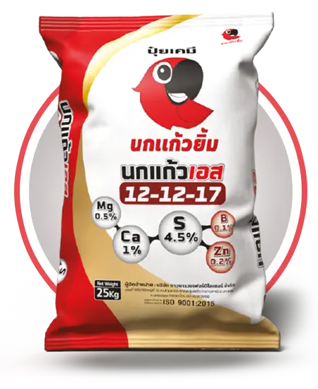 ปุ๋ยสูตร 12-12-17คือ>ปุ๋ยเคมีที่มีธาตุอาหารหลัก ไนโตรเจน (N) 12%, ฟอสฟอรัส (P) 12%, โพแทสเซียม (K) 17% (อัตราส่วน 1:1:1.4) เหมาะสำหรับ บำรุงผลไม้เช่น ทุเรียน กล้วยไม้ ไม้ผลทั่วไป ในระยะที่ต้องการ ขยายผล เพิ่มน้ำหนัก เพิ่มความหวานเนื่องจากมี โพแทสเซียมสูงและมักมี ธาตุอาหารรอง/เสริม อย่าง แมกนีเซียม (MgO) และกำมะถัน (S) เสริมเข้าไป ทำให้พืชใบเขียวสวย สร้างเนื้อแน่น และเพิ่มคุณภาพผลผลิต